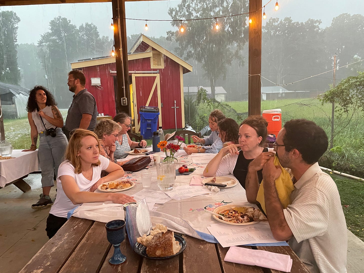 Normally it’s my duty to welcome you to our farm, where Goodie and I live and work, some twenty-five minutes north of Durham. But I am afraid we were not able to use our space this year: our house is undergoing a renovation, and all of our belongings are stored under the pole barn we use to gather guests. And so rather than ask you to rub elbows with our dining room furniture or mattresses, it’s my duty instead to repeat Amy’s welcome to the Duke Farm and extend our gratitude to her and to Saskia, the director of Duke Farm, who couldn’t be with us tonight.