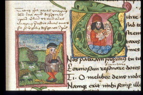 Opening of Virgil's Eclogues, detail of Burney MS 272, f 4r. [Source: British Library website]