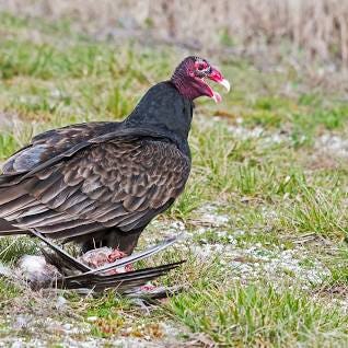 “Turkey Buzzards,” by Paul Muldoon. Last week I visited a friend who lives nearby, and somehow or another we got to talking about turkey buzzards, the big, ominous looking birds that feast almost exclusively on carrion. In our conversation I found myself rattling off a series of facts about them. When I got home, I realized that most of what I said came from Muldoon’s poem, which is a playful and poignant meditation on a bird most of us are used to seeing on roadsides or in ditches, tearing apart the “neon-flashed, X-rated rump/ of fresh roadkill.”